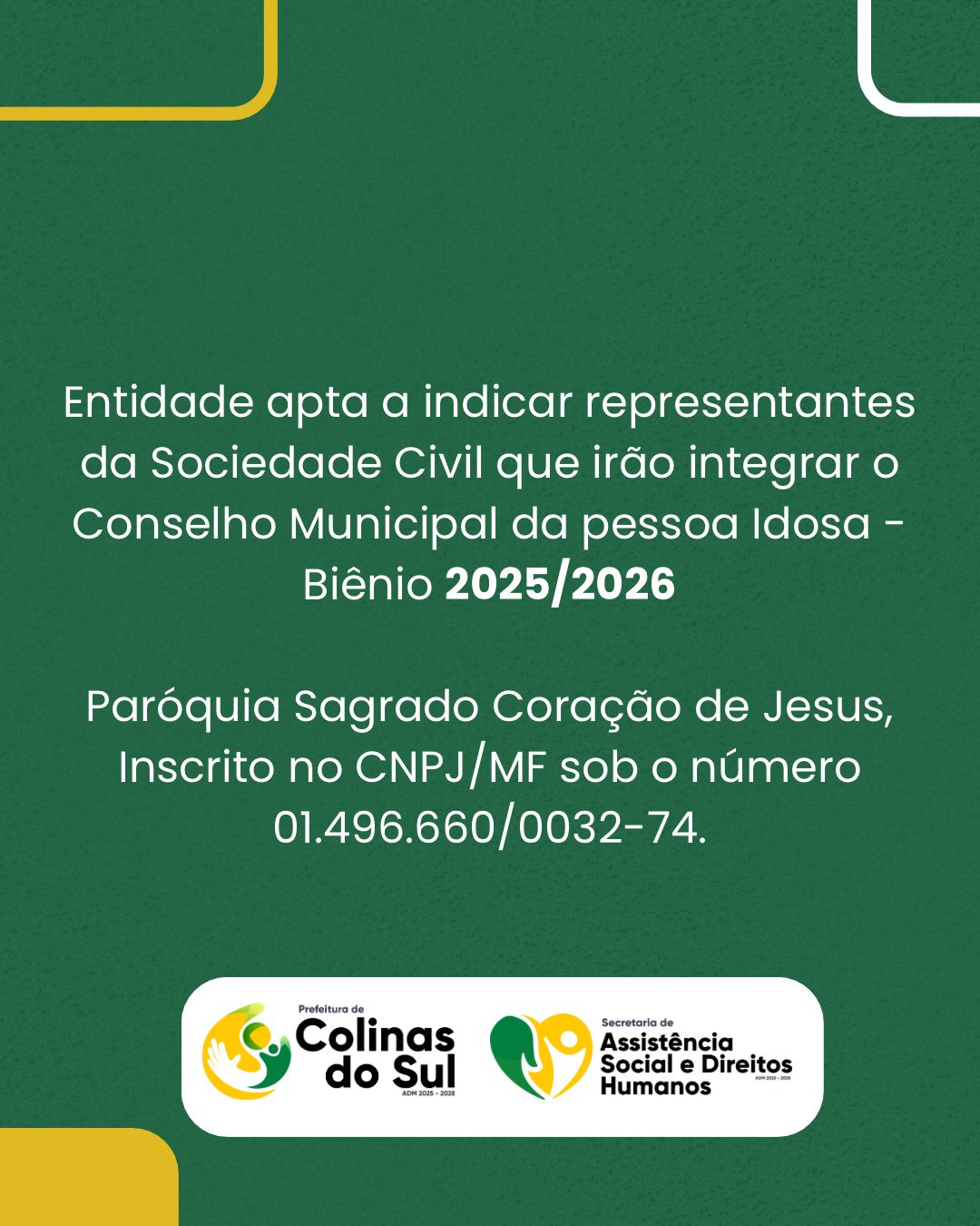 Entidade apta a indicar representantes da Sociedade Civil que irão integrar o Conselho Municipal da pessoa Idosa – Biênio 2025/2026